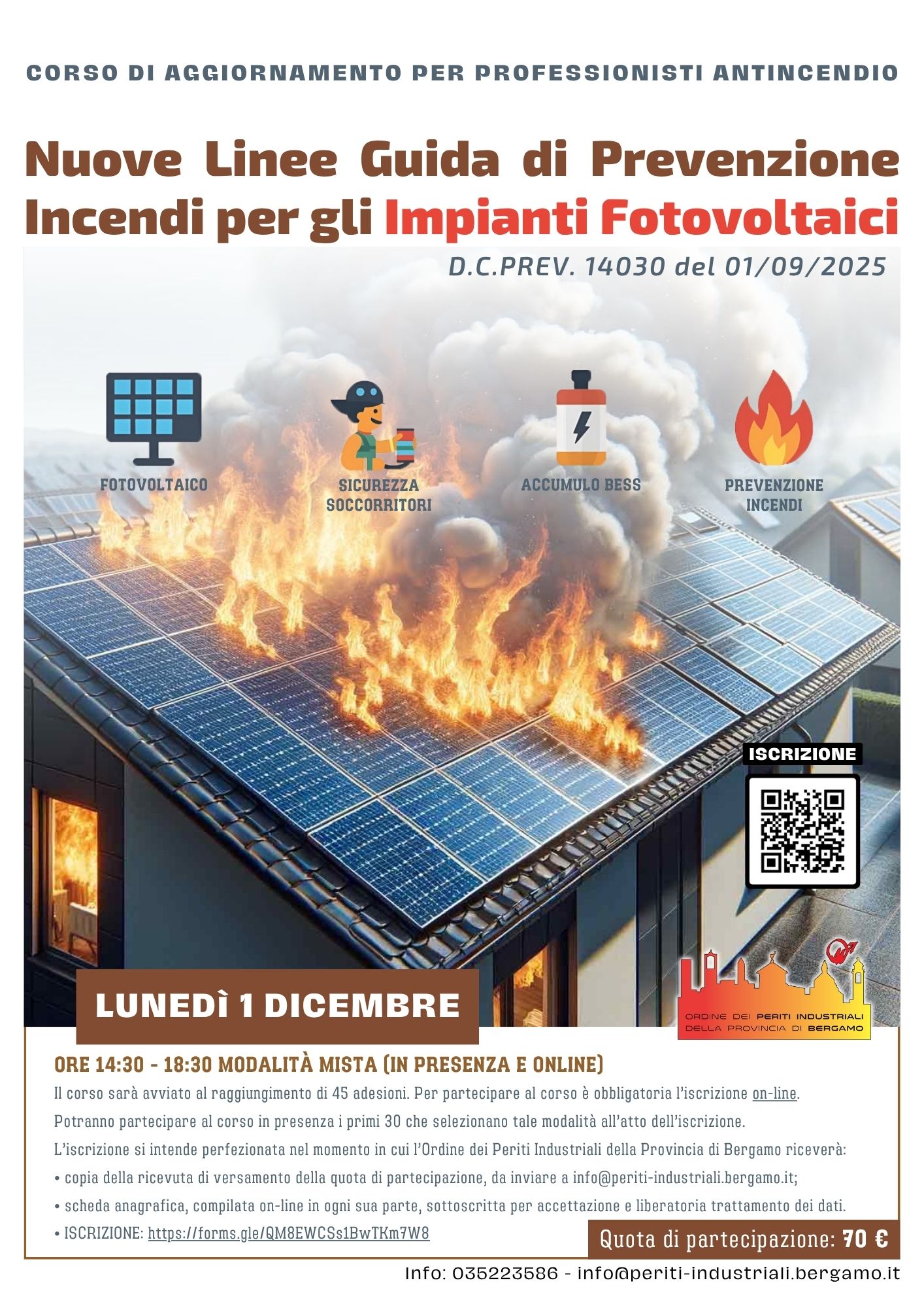 L’Ordine dei Periti Industriali e Periti Industriali Laureati di Bergamo ha organizzato un Corso di aggiornamento di 4 h, dal Titolo
